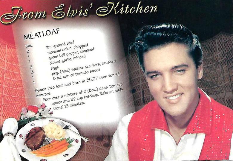 When Mom and I visited Graceland, we both bought Elvis's cookbook and this postcard. Mine is still in the recipe book she wrote out for me. I have tried a smaller version of his recipe; I don't know if Mom ever did.